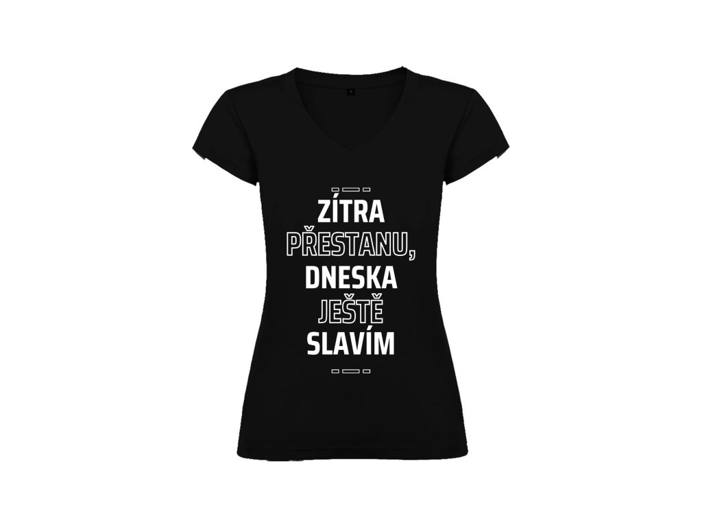 Všichni známe to legendární „zítra začnu“… ale dnes? Dnes se ještě slaví! Tričko s nápisem „Zítra přestanu, dneska ještě slavím“ je jako stvořené pro ty, kteří si umí užít každou chvíli naplno a odkládají odpovědnost na později – nejlépe na nikdy. Perfektní na večírky, narozeniny, rozlučky i úplně obyčejné dny, které si zaslouží trochu víc radosti (a možná i panáka).