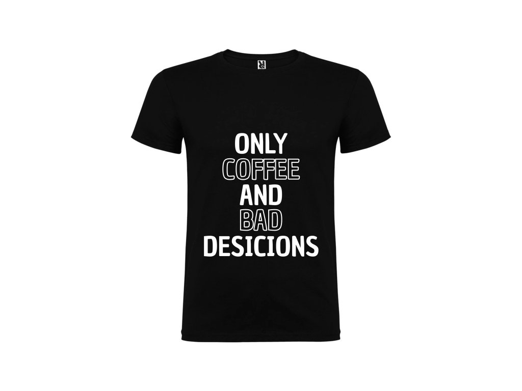 Tričko Only Coffee and Bad Decisions – protože život je směs kofeinu a lehce pochybných nápadů.